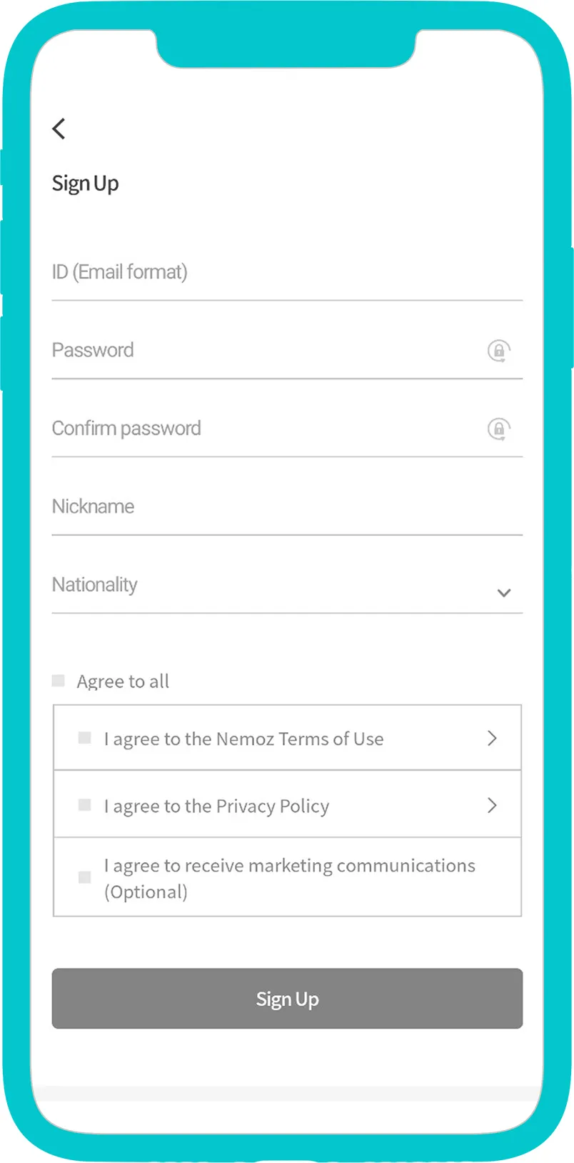 Enter all the information needed to sign up and press 'Sign Up' button. Use the email as your ID.