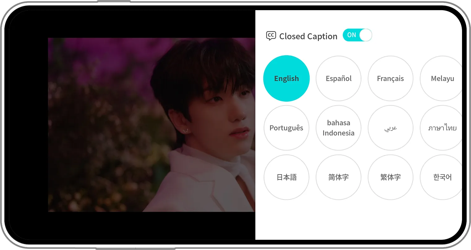 يرجى الضغط على زر CC من وضع ملء الشاشة واستخدام زر التشغيل / الإيقاف.OFF /ON عند الضغط على الزر "OFF" بجوار CC (الترجمة التوضيحية)