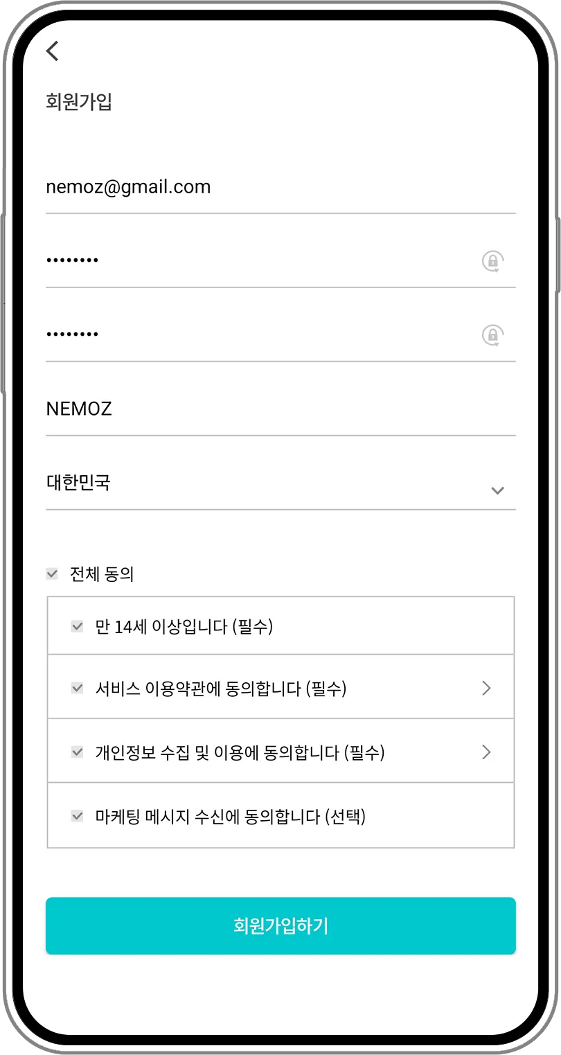 SMTOWN 계정에 등록되면 네모즈 계정과 연동됩니다.