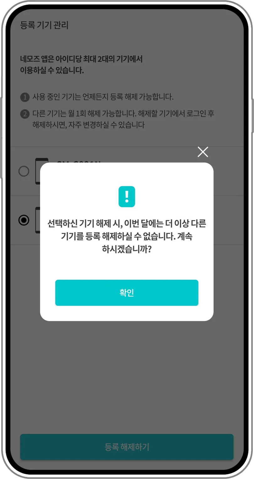 Pendaftaran/pembatalan peranti boleh dilakukan sebulan sekali.