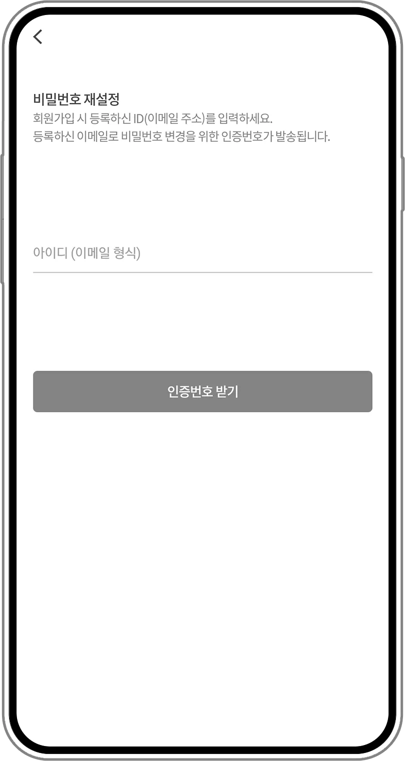 2. Ingresa el ID(correo) y presiona el botón "Recibir el código de verificación". Se enviará un código de verificación a la dirección de correo electrónico registrada como tu ID para cambiar la contraseña.