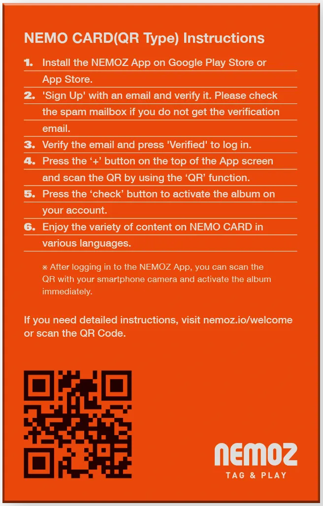 NEMO Album sẽ không được kích hoạt nếu bạn quét mã QR có trên bảng hướng dẫn thay cho mã QR trên NEMO Card.